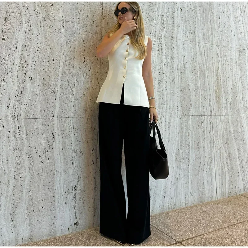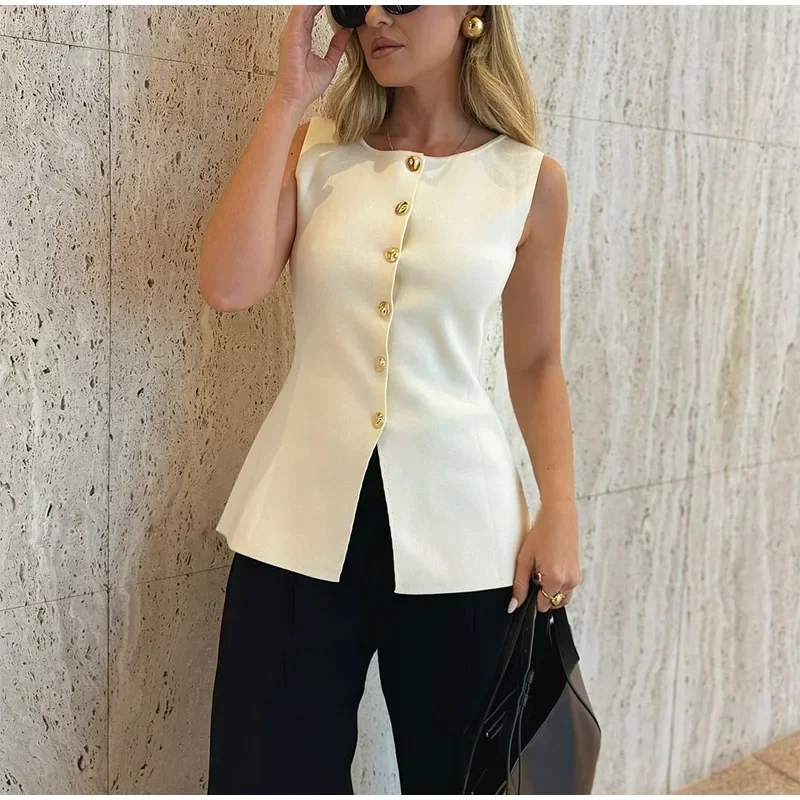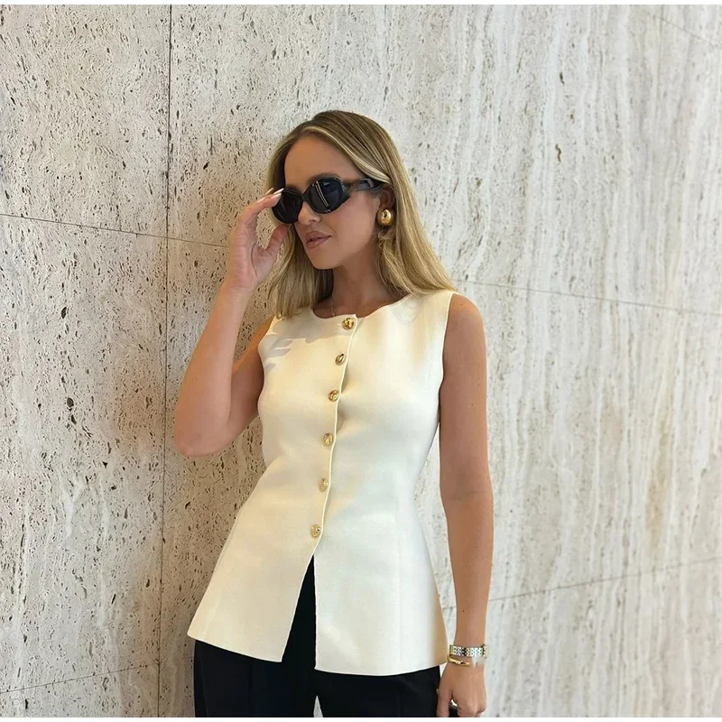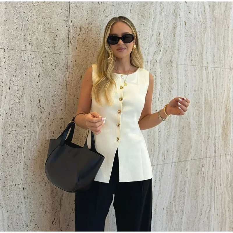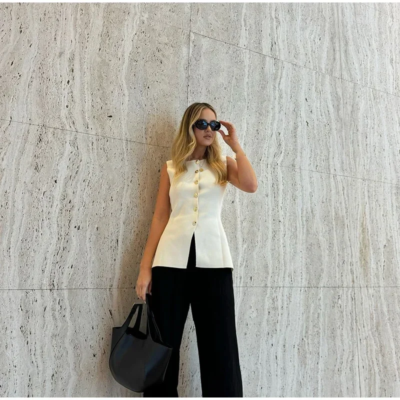 ✨ Chic et raffiné, ce haut sans manches à boutons dorés est une pièce incontournable pour un look distingué. Avec sa coupe cintrée et son tissu légèrement stretch, il sublime la silhouette tout en assurant un confort optimal.